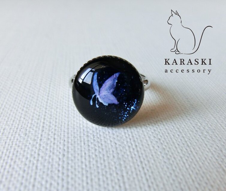手描きのオリジナルイラストをレジンで閉じ込めたゆびわです。