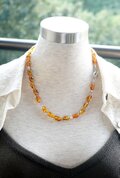 澄んだ飴色・バルティックアンバーとシルバービーズのネックレス