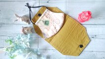 送料無料✴USAコットン使用✴カラシ色に黒のタグとスナップが映えるオシャレなマスクケースです✴