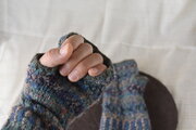 色々な装いに馴染み、アクセントになるよう、1つのハンドウォーマーに7色を使っています。