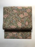 椿の花唐草模様の染紬を名古屋帯に仕立てました。