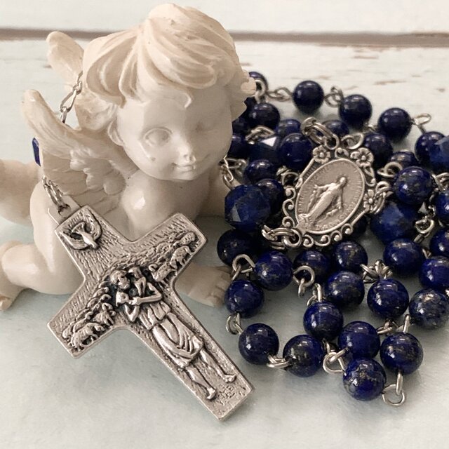 遅くなり大変申し訳ありませんm(_ _)m いつもとても素敵なロザリオをありがとうございます(*^^*)今回もセンターメダイと十字架と石のセンスがとても良くバランスが素敵です!大切にします。ありがとうございますまたよろしくおねがいします。
