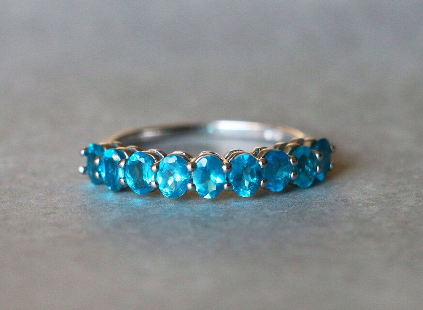 天然石*アパタイト ハーフエタニティ 指輪*16号 SV