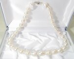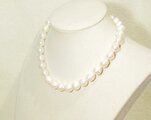 個性的な形が魅力の本真珠(淡水、セミバロック)のネックレスです。同じ形の真珠が育つことはなく、全て違う形の真珠を使った、世界で1本しかない一点物のネックレスになります。真珠のホワイトの色合いはナチュラルカラーです。