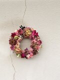 素材は、ドライフラワーの、ミニバラ、ジニア、ラクスパー、二ゲラ、アストランティア他 合計7種類。