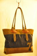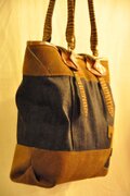 デニムとレザーの肩掛けバッグです。男女兼用。