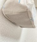 持ち手以外の部分にはすべて芯地を使用してしっかりと仕上げています。持ち手も生地を4枚重ねにして、丈夫に仕上げています。持ち手は長めにしていますので、肩掛けも可能です。