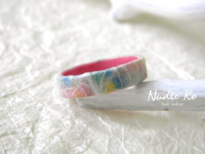 竹のベースに和紙を貼りこんで薄く仕上げたとても軽いリングです。
