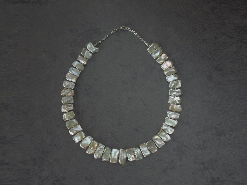 真珠の色は白をベースに、黄、ピンク、緑のような色を見せます。