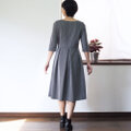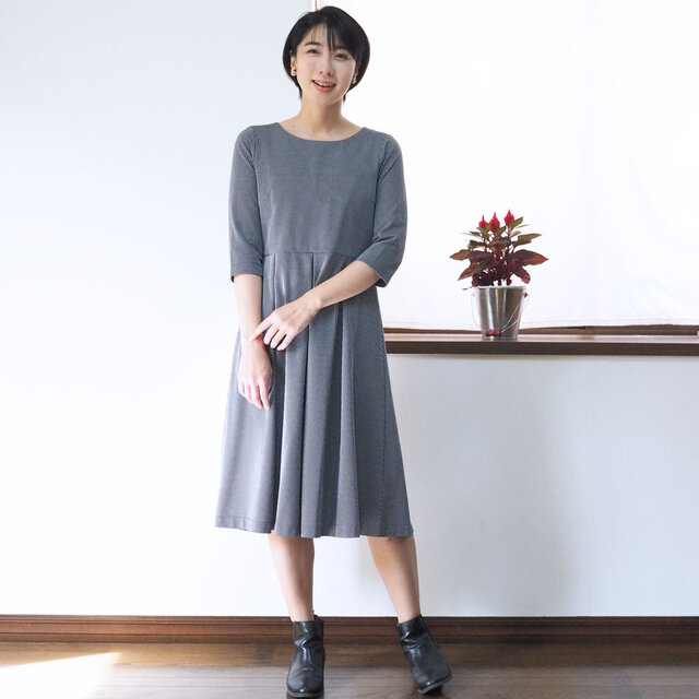 ┗ポケットやファスナー、ボタンなど余計な装飾を一切はぶき、シンプルを極めたワンピースです。その分小物やアクセサリー、着る人を引き立てます。