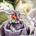 特に屈折率の高いスワロフスキーなどに関しましては、光のあたり加減で、色や表情を変える素材もございます。