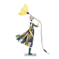 風に吹かれて、スカートがなびき、カラフルな傘がひっくり返ってしまったユーモアあふれるおしゃれなリトルガールランプ♪