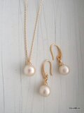 スマートなラインの小枝チャームにコットンパールを下げた可愛らしいピアス。