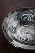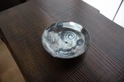 黒土に白化粧と呉須で模様をつけました。酒を注ぐと雨が降っているようです。