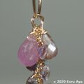 一番短いパーツは、すすきの傍に咲いていたら素敵だと思った秋の花のイメージで、上から非加熱ピンクサファイアAAAペアシェイプブリオレットカット、宝石質アメジストAAAのマロンファセットカットです。