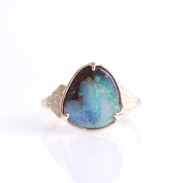 ボルダーオパールには本当に様々なタイプがありますが、「海」や「魚」を連想させるピース。作家はなんとなく人魚を連想しました。