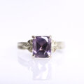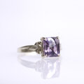 スクエアのバフトップカットが施された、ちょっとグレイッシュなパープルカラーのスピネル。
