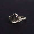 商品画像や説明の通りで、素敵なリングでした。氷ひすいの優しい色と、アームは実は仏さまがいるという、個性的なデザインに惹かれました。また、仕上げの艶消し加工が本当に綺麗です。指にスッと馴染み着け心地も良いです。たいへん気に入りました。大切にします。丁寧なご対応もありがとうございました。