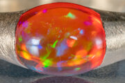 オーストラリア産と比べて高温の環境で急速にできたために内部構造が均質になり透明度が高く大柄な遊色が現れます。