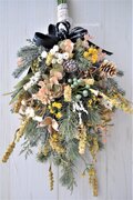 少し大きめ縦およそ50㎝ アーティフィシャルと自然素材ミックスのスワッグです