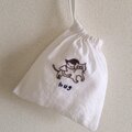 女の子とネコちゃんの優しい絵柄の表情に、ほっこりした気持ちになります…♪ かわいらしい巾着、ありがとうございました! また素敵な刺繍を楽しみにしております(^^)