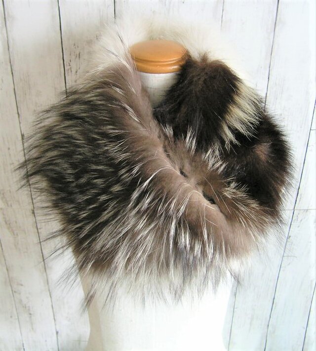 ブルフォックス、シルバーフォックス、スカンクの3種類のファーを組み合わせたファーnejiriスヌードです。