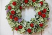 乾きたてのアナベルのベースに、真っ赤な千日紅をあしらったラブリーなミニリースです。
