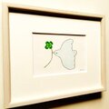 イラスト 原画「幸せを運ぶ(四葉のクローバー)」※木製額縁入り(インチサイズ)
