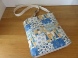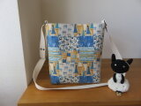 北欧風のような綿麻のパチワーク生地でシンプルなショルダーバッグを作りました。