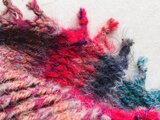 織物風に編んだフリンジスヌードです。 捻り一目ゴム編みの手編みです。 一段一段、糸を切り替えているので、巻く方向により、印象がかわります。 一重でも二重でもお使い頂けます。