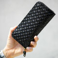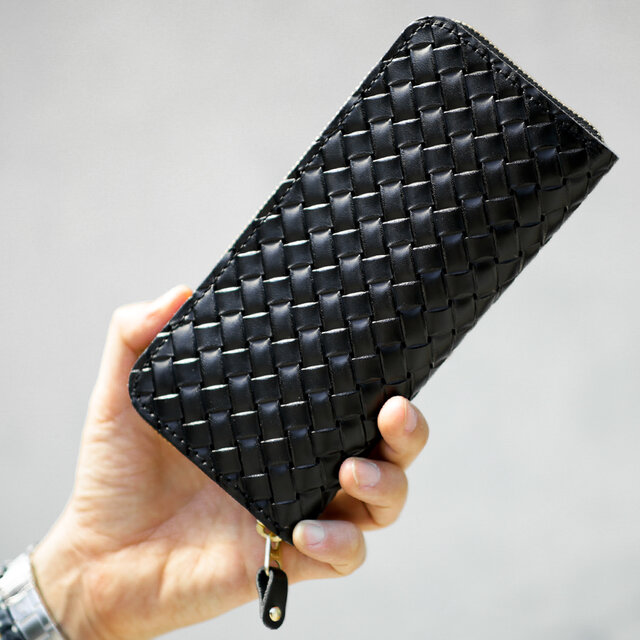 永久修理保証/返品無料 栃木レザー 日本製 イントレチャート ラウンドファスナー ロングウォレット DIEGO ブラック 長財布