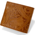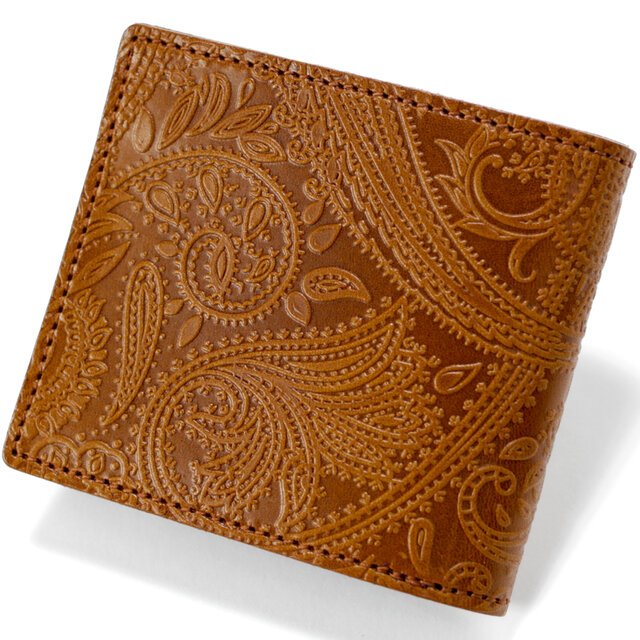 永久保証 オール 栃木レザー ペイズリー型押し 二つ折り 財布 カード & 札入れ RUUD オーク ミニ財布 ヌメ革