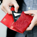 ●表のペイズリー型押し栃木レザーと中の革にも栃木レザー「ピアノ」使いしっかりとした質感に。
