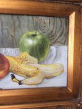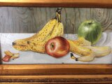 リンゴの美味しい季節。熟れたバナナと赤と青のリンゴこのデザインはマイセンのデザインを参考にしたものです。置かれた背景のデザインで作品も変わってくるものです。ので