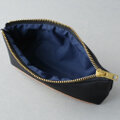栃木レザー バリスティックナイロン ペンケース 革 大容量 おしゃれ メガネケース 筆箱 ポーチ プレゼント ブラック×ネイビー