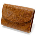 ペイズリー型押し 三つ折り コンパクトウォレット MANUEL オーク ミニ財布 ヌメ革