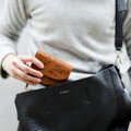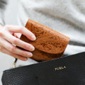 ●オーバー掌サイズがちょうど良し。丸みのあるコンパクトフォルムの3つ折りミドルウォレット。