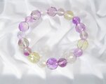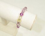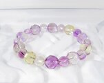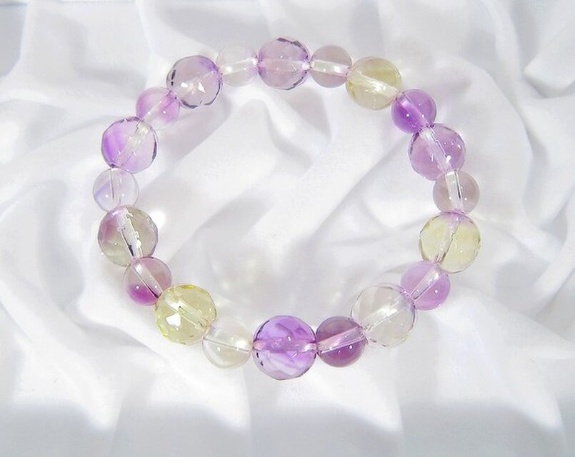 光沢感がとても綺麗なアメトリンを使ったブレスレットです。輝きが特に綺麗な多面カットのものも使っています。伸縮性のあるゴムひもを使っています。