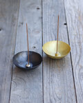 ころりとまあるい錫のお香立てと、深型の純銅黒染鉢を組み合わせた香鉢セットです。