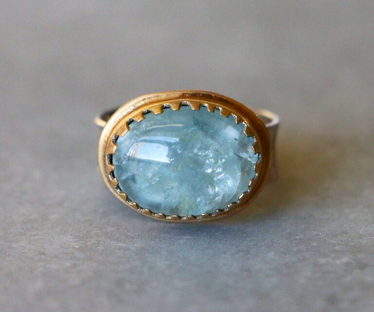 素材…アクアマリン いぶし銀スターリングシルバー925(アンティーク仕上げ)一部22ktゴールドプレーテッド