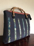紬部分が黒に近いので剥いだ帯地が引き立ち、思った以上に渋さと華やかさが同居しているような手提げになりました