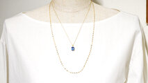 大粒ブルーカラーが、デコルテで大人シックに艶めきます。