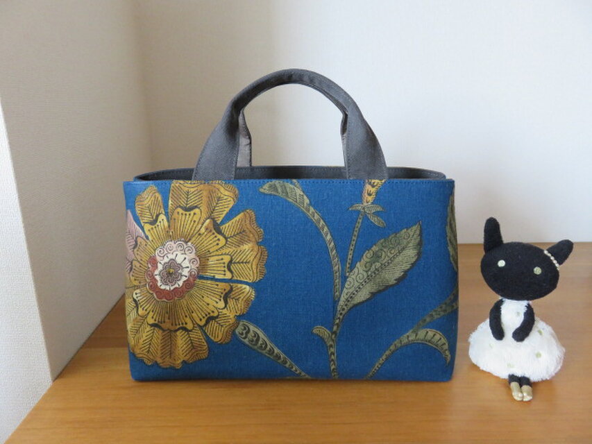 イギリスのHennaというブランドのリネン生地で横長トートバッグを作りました。
