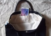好きな生地を集めて作ったトートバッグです。裏側と底は黒の帆布を使っています。