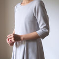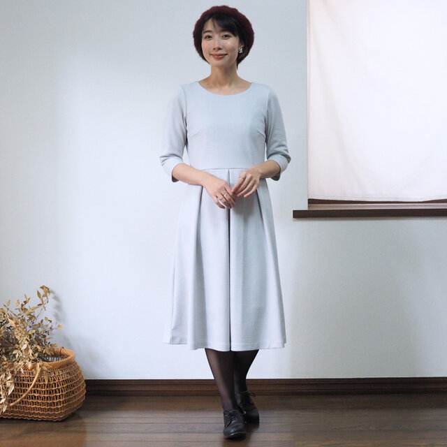 ┗ポケットやファスナー、ボタンなど余計な装飾を一切はぶき、シンプルを極めたワンピースです。その分小物やアクセサリー、着る人を引き立てます。