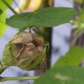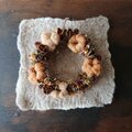 木の実など、盛り沢山になっています。このコットンは我が家のベランダで育てました。収穫をしたコットンと木の実のリース。コットンのふわふわ感と羊毛の風合いはピッタリの取り合わせ、秋ならではの作品です。どうぞ秋の季節を感じて下さい。