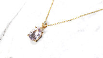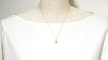 大粒ピンクフローライトがデコルテで艶めきます。