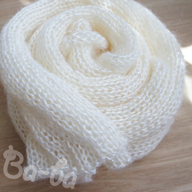 素材:ウール混紡モヘヤ・オフ白(毛足有り、アクリル82%、毛18%)