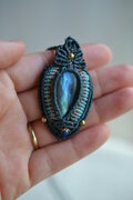 スカイブルー、ディープブルー、グリーン、イエロー..決して大きくはない石ですが、大きな存在感を示してくれるラブラドライトです。