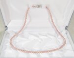 照りがとても強く、丸く滑らかな表面の本真珠(淡水パール)のネックレスです。